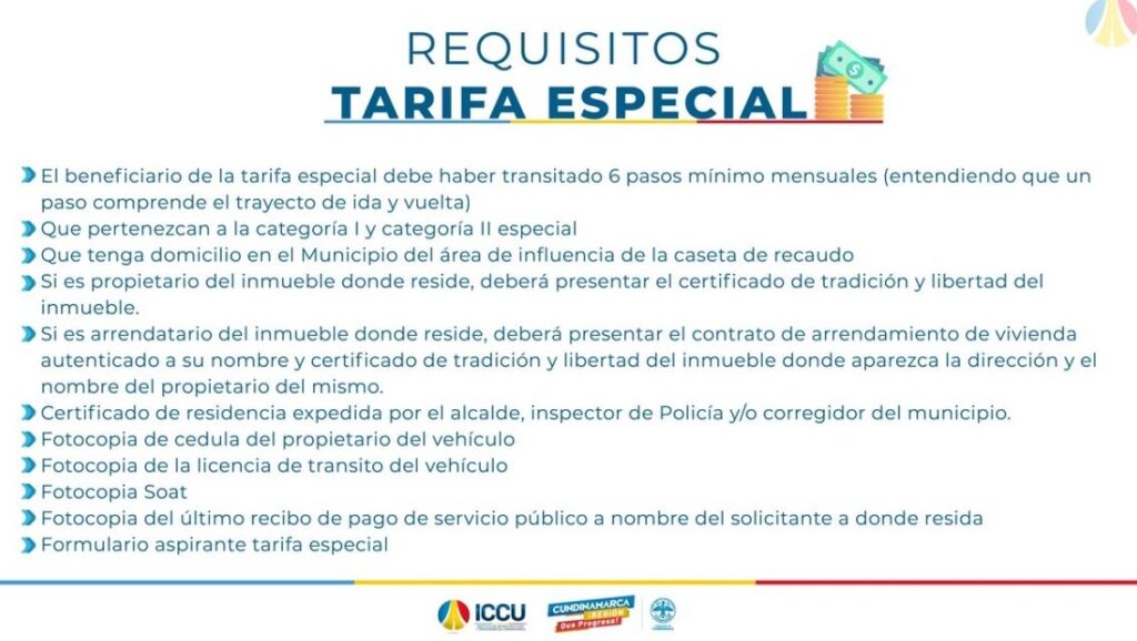 Para los habitantes que se encuentran viviendo en los municipios cercanos al peaje podrán obtener la tarifa preferencial presentando en la concesión los siguientes documentos si cumplen los requisitos: