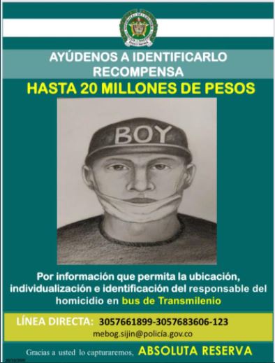Bogotá aun no sale de la consternación por la muerte de Oswaldo Muñoz, el hombre de 41 años que fue asesinado el dia de ayer en medio de un robo dentro de un bus articulado de Transmilenio. El día de hoy la policía Nacional, dio a conocer el retrato hablado de uno de los 3 sindicados.