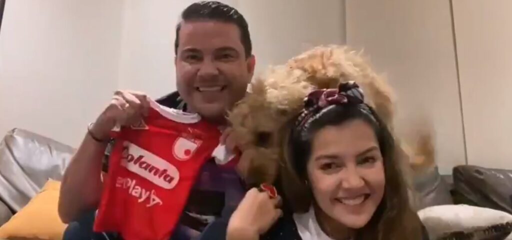 El gobernador también mostro el primer regalo para su primogénito, la camiseta del Independiente Santafe, uno de los equipos de la capital del cual el gobernador es uno de sus más fieles seguidores.